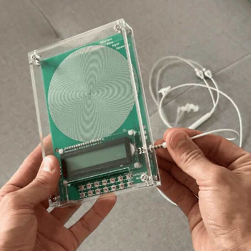 L’appareil génère des fréquences sous forme de signaux subtils. Vous pouvez les diffuser dans l’espace ambiant ou les écouter directement via un casque ou des enceintes connectées.
